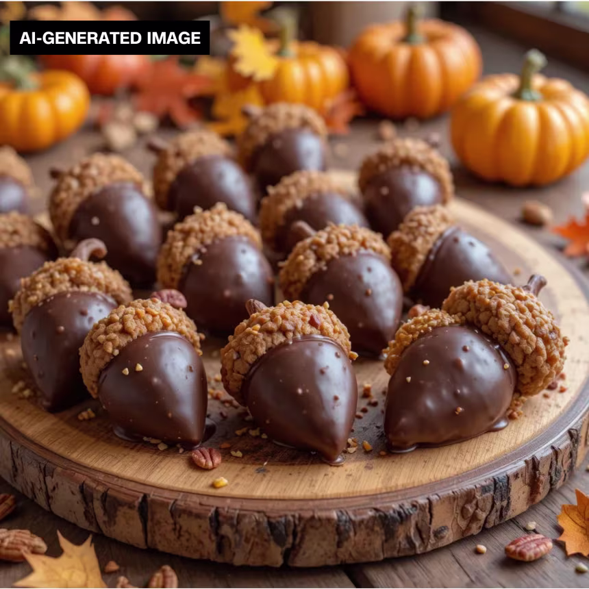 The recipe says these chocolate acorns are made with Nutter Butter cookies. They’re really made with AI. | Dessertpro